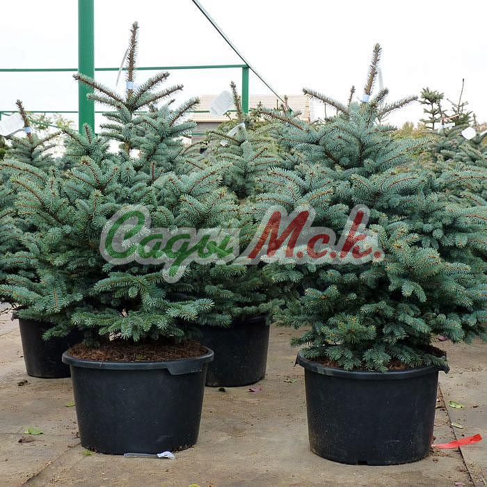 Ель колючая Kaibab (Picea Kaibab). Благодаря стройности кроны эта ель торжественна и строга. Её обычно сажают в парадной зоне сада. Достигая высоты 10-15 метров, она сохраняет правильную ярусно-пирамидальную форму без подсыхания нижних ветвей. Ветви мощные, не ломаются под тяжестью мокрого снега. Хвоя имеет оттенки от зеленого до серо-голубого. Ежегодный прирост 15-25 см. Форма кроны в молодости асимметричная, позднее ширококонусовидная, с очень густо расположенными ветвями. Ветви жесткие, отрастающие под прямым углом от ствола. Хвоя серебристо-голубая, колючая, густая, слегка серповидная, 10-12 мм длиной. Корневая система поверхностная. Прекрасно переносит пересадку во взрослом состоянии. В молодом возрасте поддается стрижке и образует непроходимые живые изгороди. Одно из главных достоинств Ели колючей то, что она не страдает от весенних заморозков и солнечных ожогов, хорошо мирится с высокими летними температурами, светолюбива. Зона зимостойкости: 4 (-35 ° С).