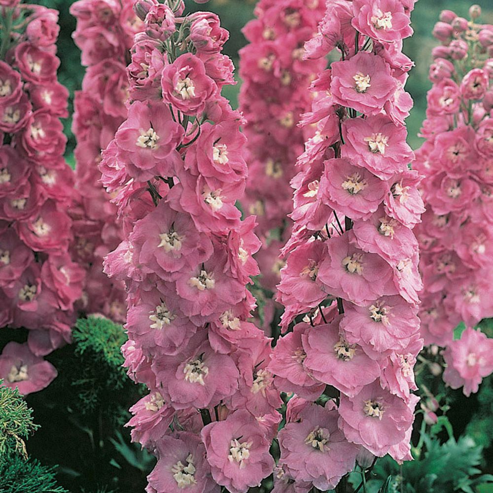 Дельфиниум тихоокеанский Астолат (Astolat Delphinium cultorum mixed) – идеальный вариант для дизайнерской посадки в парке, на газоне или клумбе. Это ядовитое растение, но которое с учетом медицинских показаний применяется в народной медицине. Представленный сорт не нуждается в тщательном уходе и может произрастать в самых разных условиях. На мощных густооблиственных кустах нельзя не заметить розовые пирамидальные соцветия с полумахровыми цветками в диаметре по 6-7 см, состоящими из 4-5 лепестков. При составлении композиций Дельфиниум тихоокеанский Астолат идеально подойдет для декорирования построек, стен и для расположения на заднем плане миксбордеров.