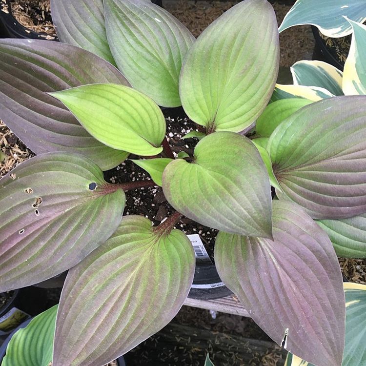 - Характеристики Суперновинка! Зеленые листья постепенно приобретают красно-фиолетовый окрас, начиная от краев к основанию. Черешки красно-фиолетовые
