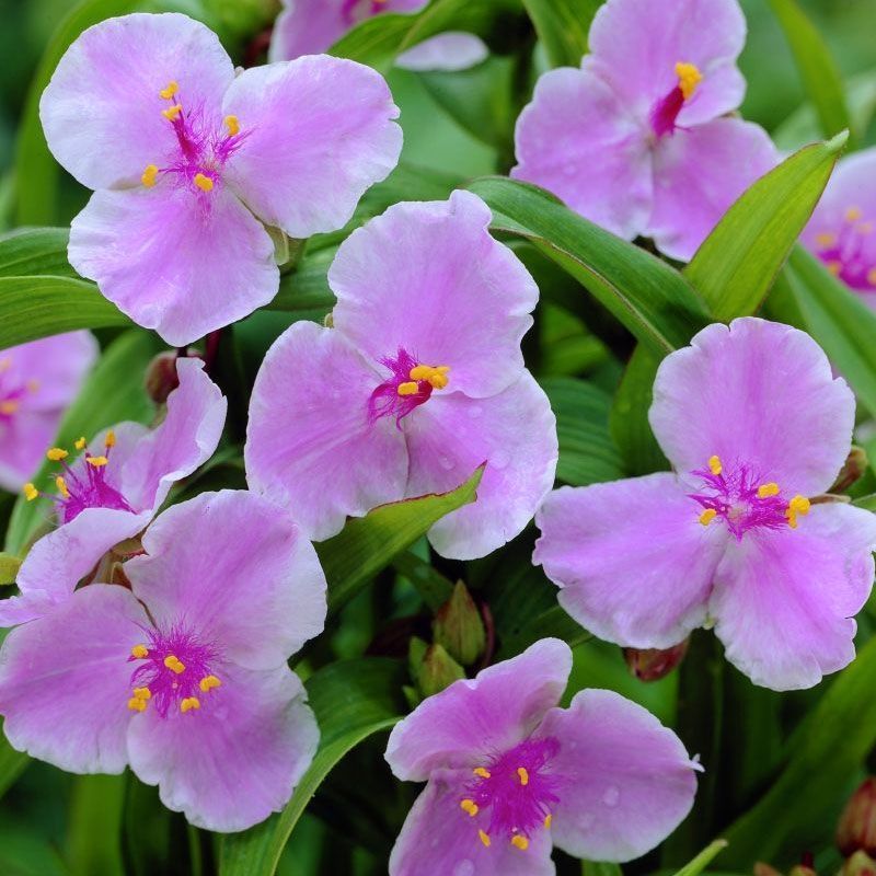 Традесканция Пинк Шабли (Tradescantia andersoniana Pink Chablis) сохраняет свою декоративность на протяжении всего сезона. Растение многолетнее травянистое. Вырастает до 40 сантиметров. Стебли – прямостоячие, с линейными листьями. На верхушке распускаются трехлепестковые небольшие цветочки, светло-розовые с белой окантовкой и ярко-розовой серединкой. Цветки – до 3 сантиметров в диаметре. Каждый цветок цветет не более 1 дня, но за счет большого количества бутонов в кисти цветение получается длительное, на протяжении всего лета. Традесканция Пинк Шабли любит влажные почвы и притененные участки, не переносят засуху. Зимостойкость – хорошая.