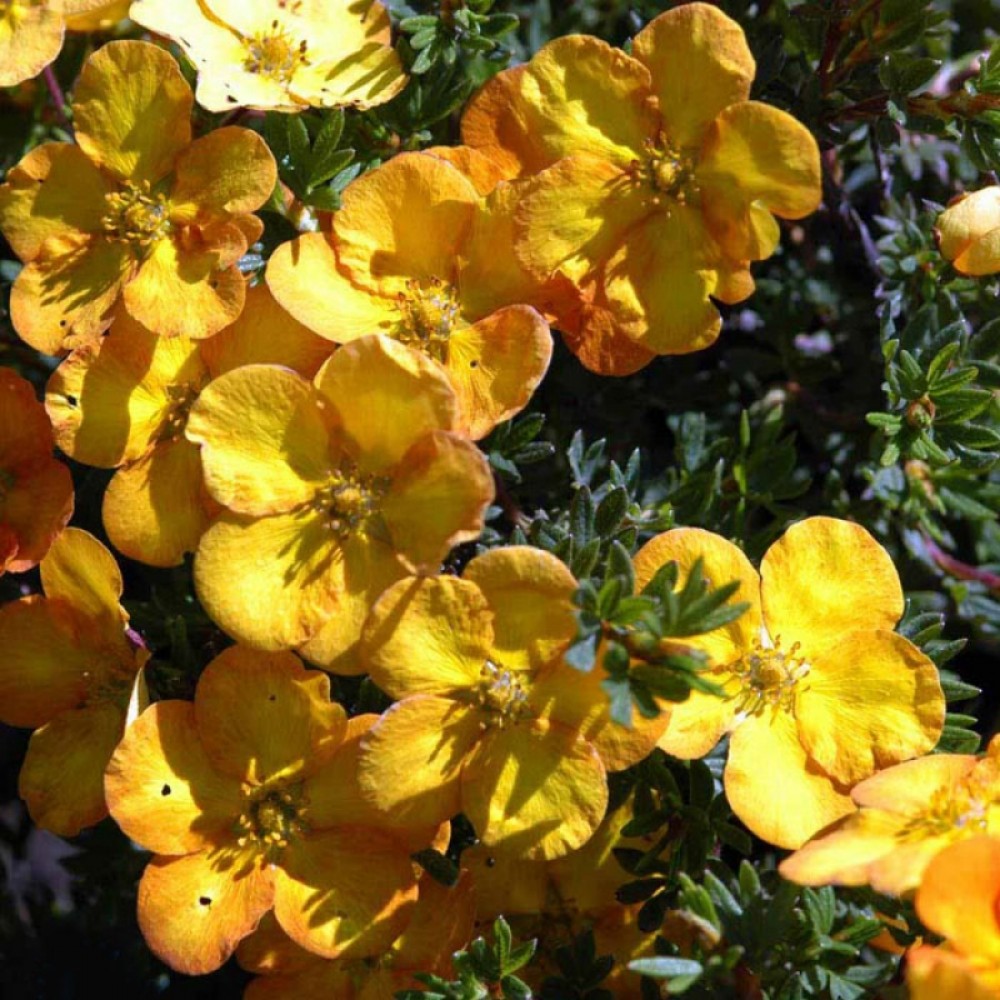 Лапчатка Annette - это неприхотливый кустарник высотой до 0.8 м и шириной до 1 м. Форма округлая, широкая, побеги стелющиеся. Листья темно-зеленые. Цветки светло-оранжевые, затем желтеющие в центре, по краю оранжевые. Эта лапчатка быстрорастущая. Время цветения июнь-октябрь.