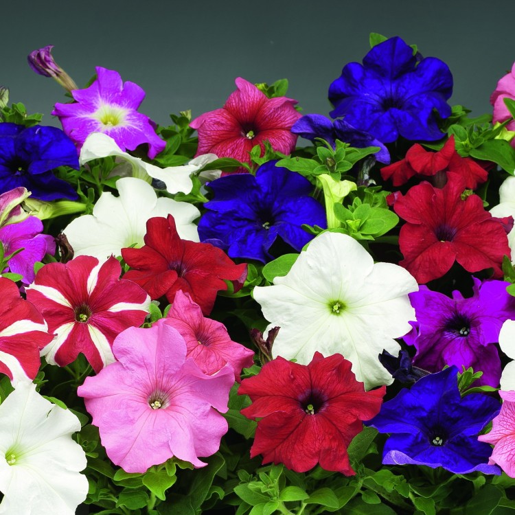 Петуния Eagle - это замечательная серия с компактным кустом (высотой 15-25 см), покрытым многочисленными крупными (до 10-12 см в диаметре) цветками. Не перерастает в возрасте рассады. Обладает отличным кущением, что позволяет растениям самостоятельно формировать шарообзазный кустик. Цветки легко восстанавливаются после дождя.