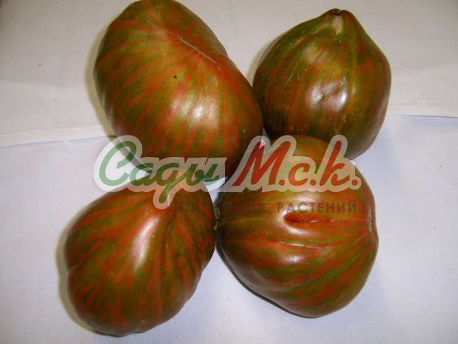 Помидор Chocolate Stripes - экзотичный томатный гигант. Плоды огромные, массой до 500 грамм, округло-приплюснутой формы. Окрас созревших плодов коричневый с зелено-серебристыми полосами. Мякоть мясистая, темная, очень вкусная. Сорт используется для свежего потребления и изготовления соков