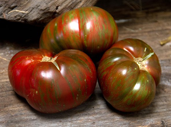 Помидор Large Barred Boar - растение среднеспелое, высотой 150-200 см. Плоды темно-коричневые с металлическими полосами зеленого цвета. Форма плодов плоско-округлая с многочисленными ребрами. Средний вес - 300-400 грамм. Плоды очень сочные и сладкие. Сорт высокоурожайный.