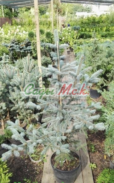 Ель канадская Блю Вондер "Blue Wonder" - медленнорастущая карликовая декоративная форма высотой не более 1,8 метра и диаметром 0,8 метра. К 10 годам достигает высоты 70 см и диаметра кроны 40 см. Имеет конусовидную, плотную крону и оригинальную серо-синюю окраску хвои. Ее иглы не приобретают со временем зеленую окраску. Весной появляется молодая немного более светлая хвоя, к середине лета цвет которой сливается с цветом старой хвои. Корневая система поверхностная.
