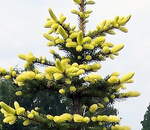 Ель колючая Maygold - вечнозеленое дерево с конусовидной кроной. Быстрорастущее, 10 м высотой и 4-5 м шириной. Годовой прирост в высоту 20см, в ширину 15 см. Хвоя игольчатая, плотная, четырехгранная, жесткая, голубовато-стальная, весенние приросты ярко-желтые при посадке на солнечном месте. Ель морозостойка, лучше растет на влажной почве. Приспособлена к городским условиям. Прекрасно смотрится в качестве солитера.