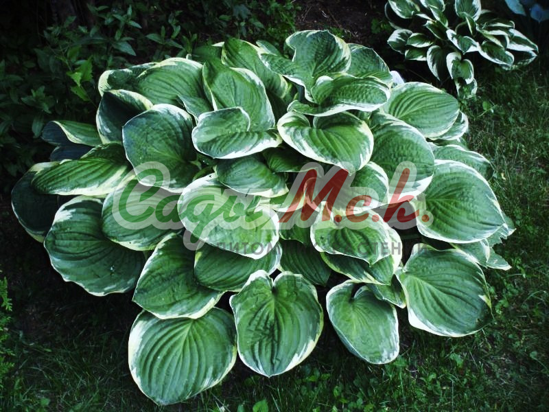 Хоста гибридная Марджиз Эйнджел - высота растения 70 см, диаметр куста во взрослом состоянии 100 см. У данного сорта листья жёлтые с широкой голубовато-сизой каймой.