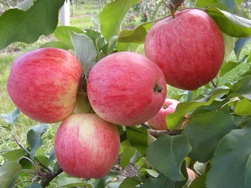 Саженцы яблони Налив розовый относятся к универсальным сортам. Дерево рослое с компактной кроной. Плод крупный, 120 г, конической формы с небольшим ребрением. Кожица плотная, глянцевая, белого или светло-зеленого оттенка с темно-розовым румянцем. Мякоть ароматная, мелкозернистая, кисло-сладкая на вкус.