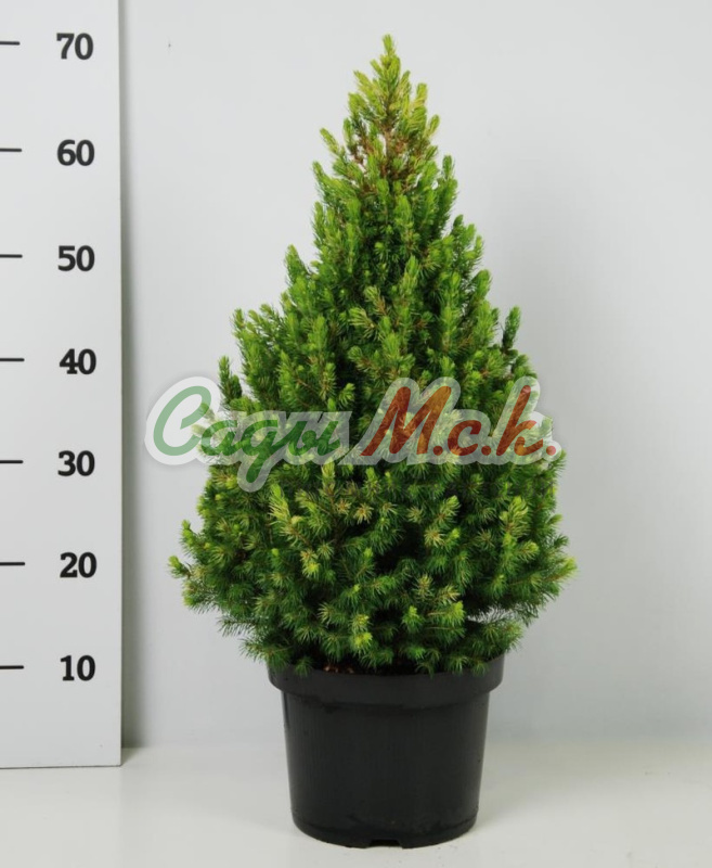Ель конической формы. Ранее относилась к Picea orientalis. Высота к 10-ти годам 5 м и ширина 1 м, затем дорастает до высоты 10 м и ширины 2 м. Молодой весенний прирост кремово-жёлтый. Хвоя имеет жёлтые отблески. Место солнечное. Почва влажная дренированная. Зона 3 (до -34ºС).